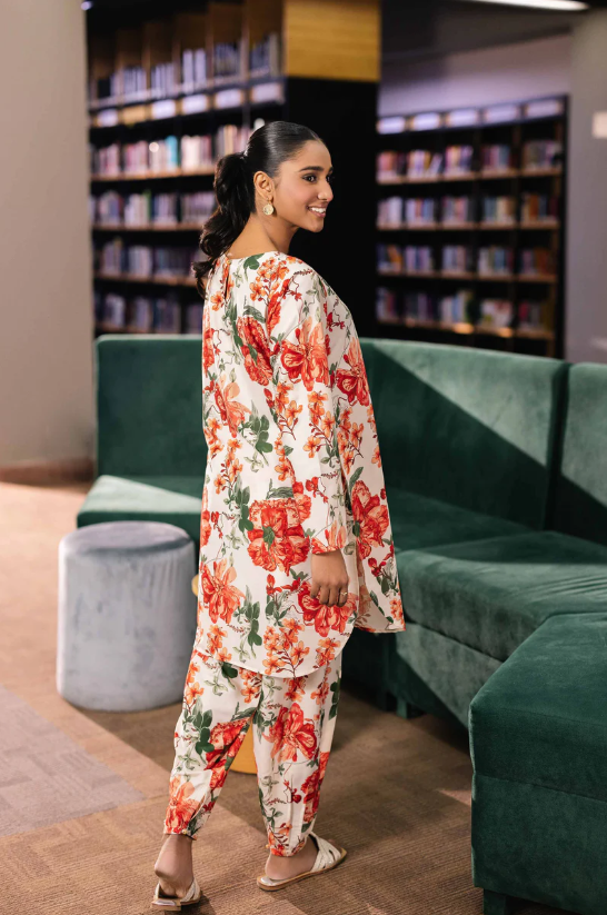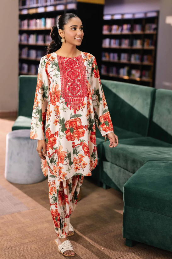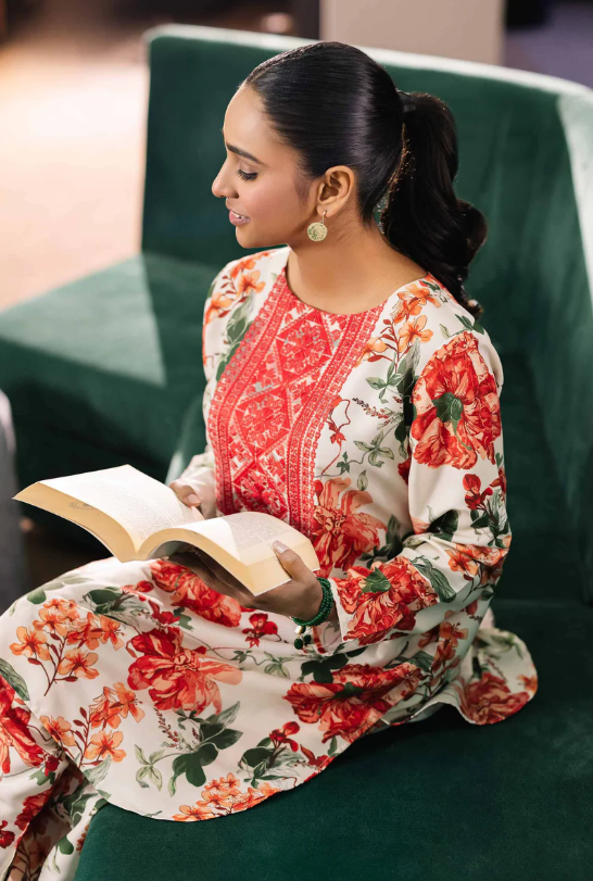 Indulge your beauty by wearing this printed embroidered two-piece suit from the latest pret summer collection.