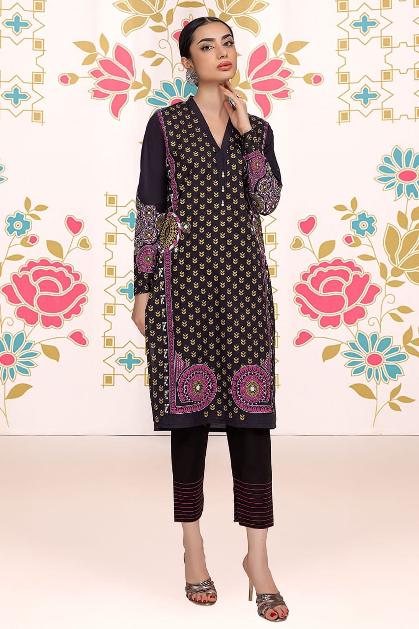 Elevate your everyday style with this stunning paste print lawn shirt by So Kamal. Featuring a beautifully printed lawn shirt adorned with intricate motifs in vibrant shades of pink and mustard on a deep base. Perfect for both casual outings and semi-formal gatherings, this breathable and elegant outfit blends comfort with sophistication.