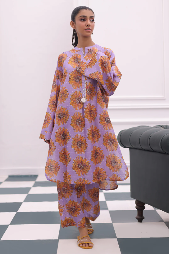 Expertly crafted with lightweight and breathable cambric fabric, this kurta trouser in a soft lilac hue is a versatile addition to any wardrobe. With its delicate print and tailored design, it effortlessly combines style and comfort for the modern woman. Perfect for any occasion, dress it up or down to suit your unique taste.